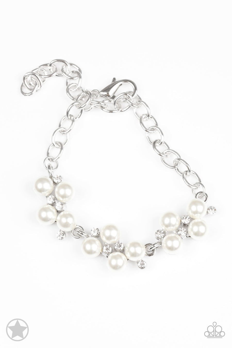 <P> Small clusters of shimmery white pearls are dusted with sparkling rhinestones, creating a romantic timeless design. Features an adjustable clasp closure.</p>